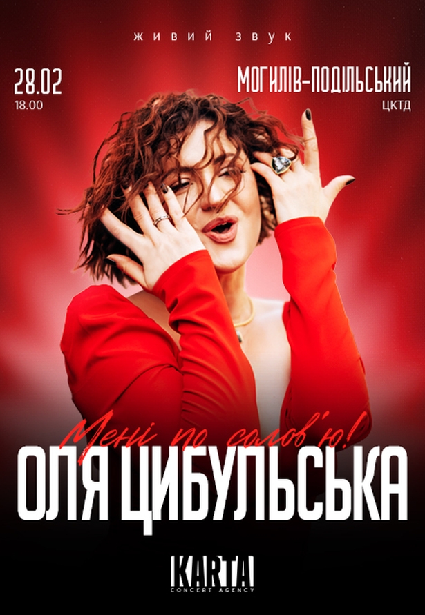 На тебе чекає вечір справжніх емоцій — улюблені пісні, щирий гумор, живе спілкування та шалена енергетика Олі Цибульської.
